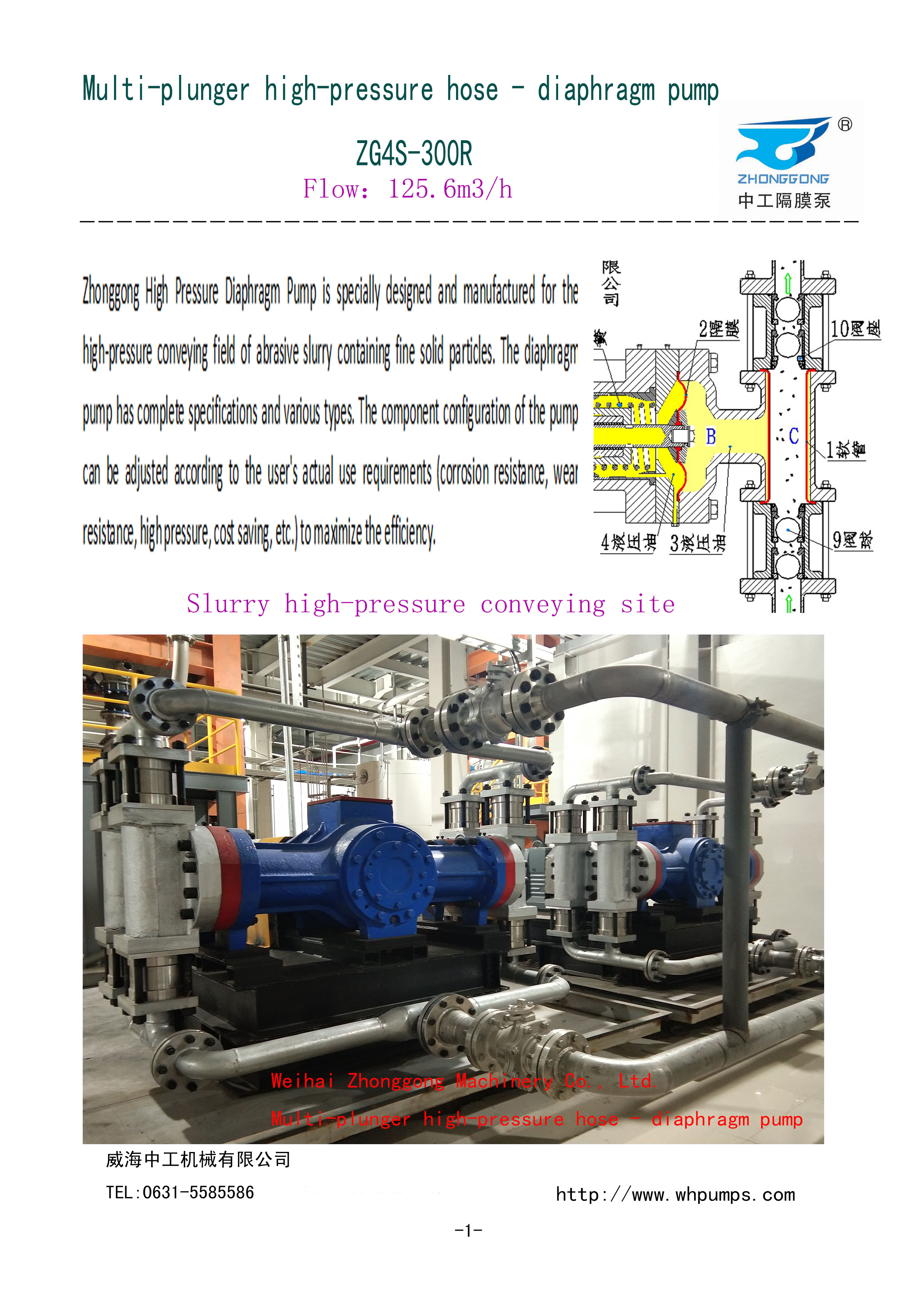 威海中工機械有限公司是一家具有自主知識產權涉足特種漿液高壓輸送領域的高科技股份制企業,集 科研開發、技術轉讓、生產銷售為一體。解決以往隔膜泵的所有缺陷,以其獨特的技術領先于世界。